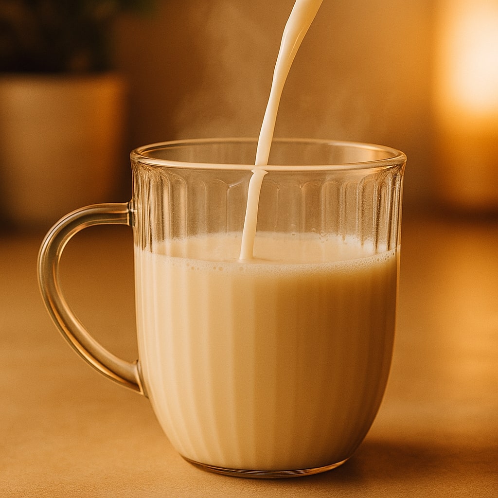 Versez votre lait chaud favoris dans une tasse. (Notre préféré c'est le lait d'avoine🤫)